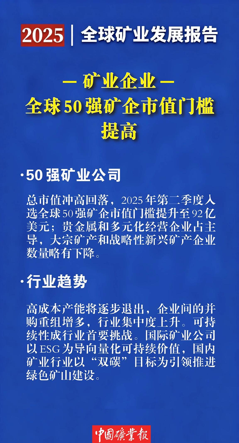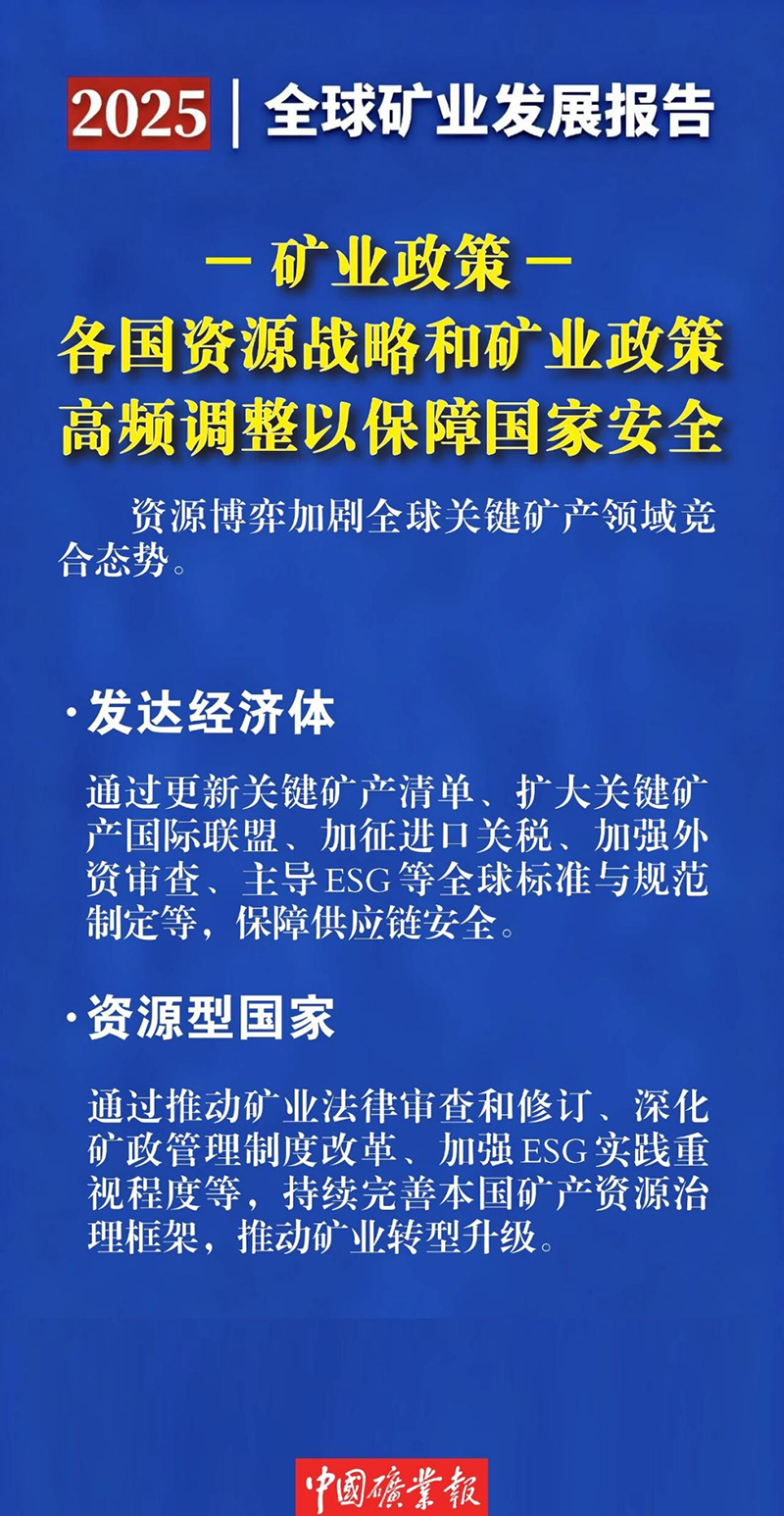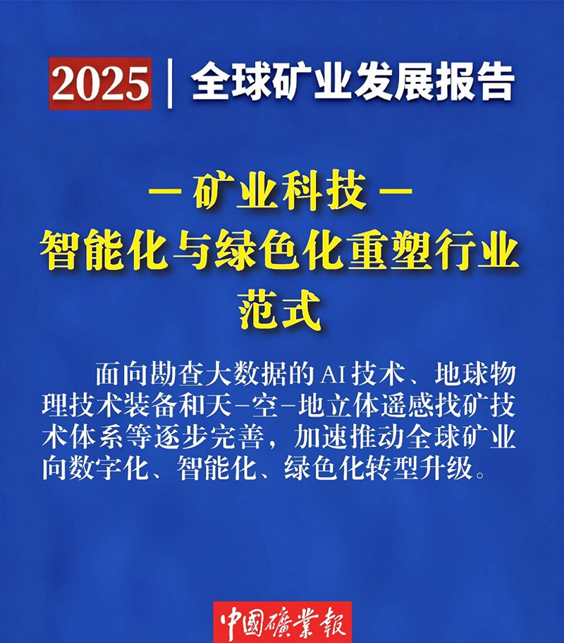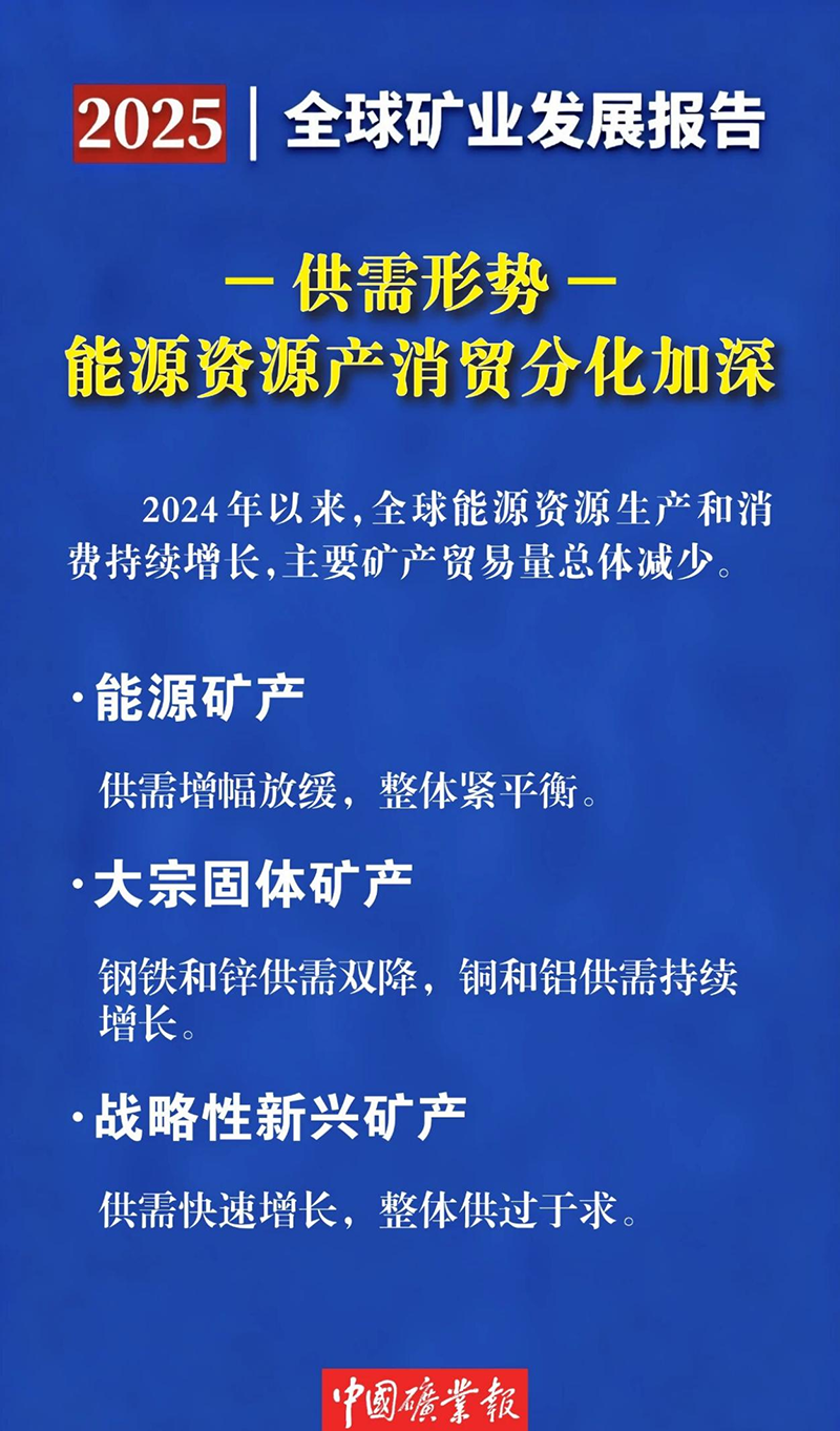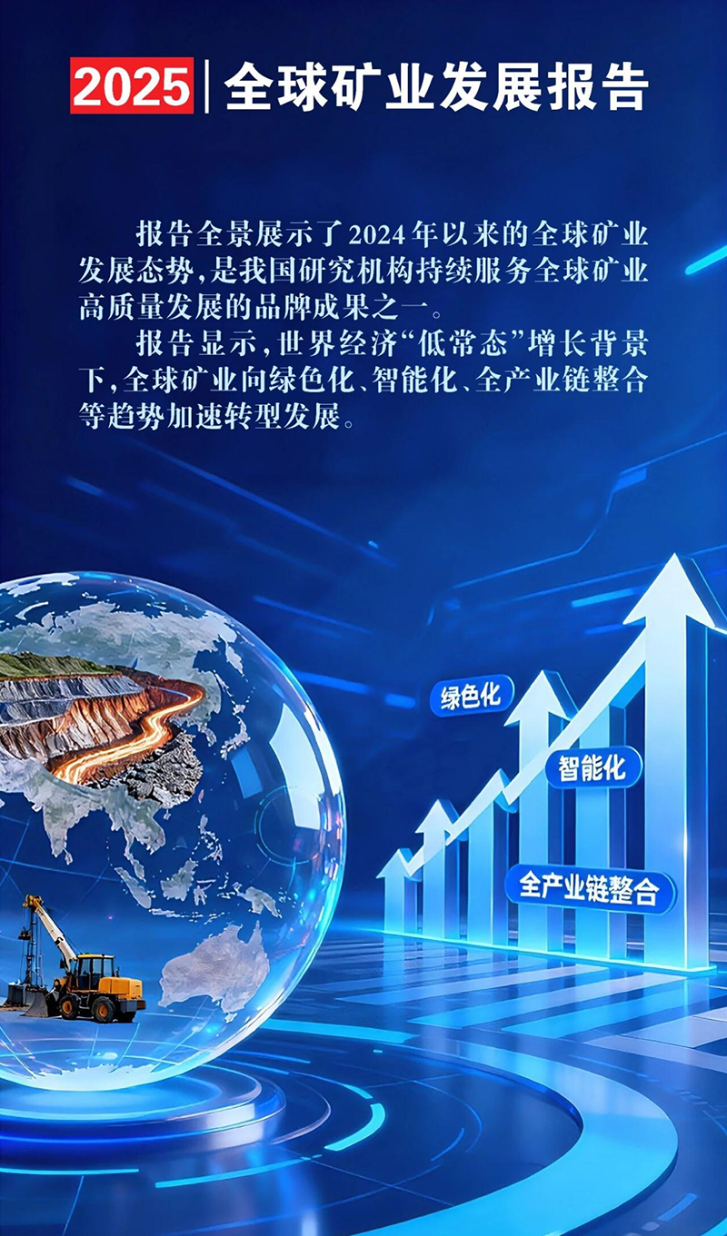 1024日,在2025(第二十七屆)中國國際礦業(yè)大會(huì)一帶一路地學(xué)合作與礦業(yè)投資論壇上,自然資源部中國地質(zhì)調(diào)查局國際礦業(yè)研究中心發(fā)布了《全球礦業(yè)發(fā)展報(bào)告2025》(以下簡稱《報(bào)告》)。《報(bào)告》全景展示了2024年以來的全球礦業(yè)發(fā)展態(tài)勢(shì),是我國研究機(jī)構(gòu)持續(xù)服務(wù)全球礦業(yè)高質(zhì)量發(fā)展的品牌成果之一。