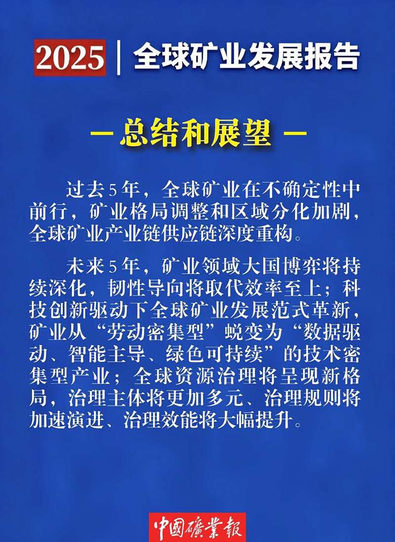1024日在2025(第二十七屆)中國國際礦業(yè)大會(huì)上中國地質(zhì)調(diào)查局國際礦業(yè)研究中心發(fā)布《全球礦業(yè)發(fā)展報(bào)告2025